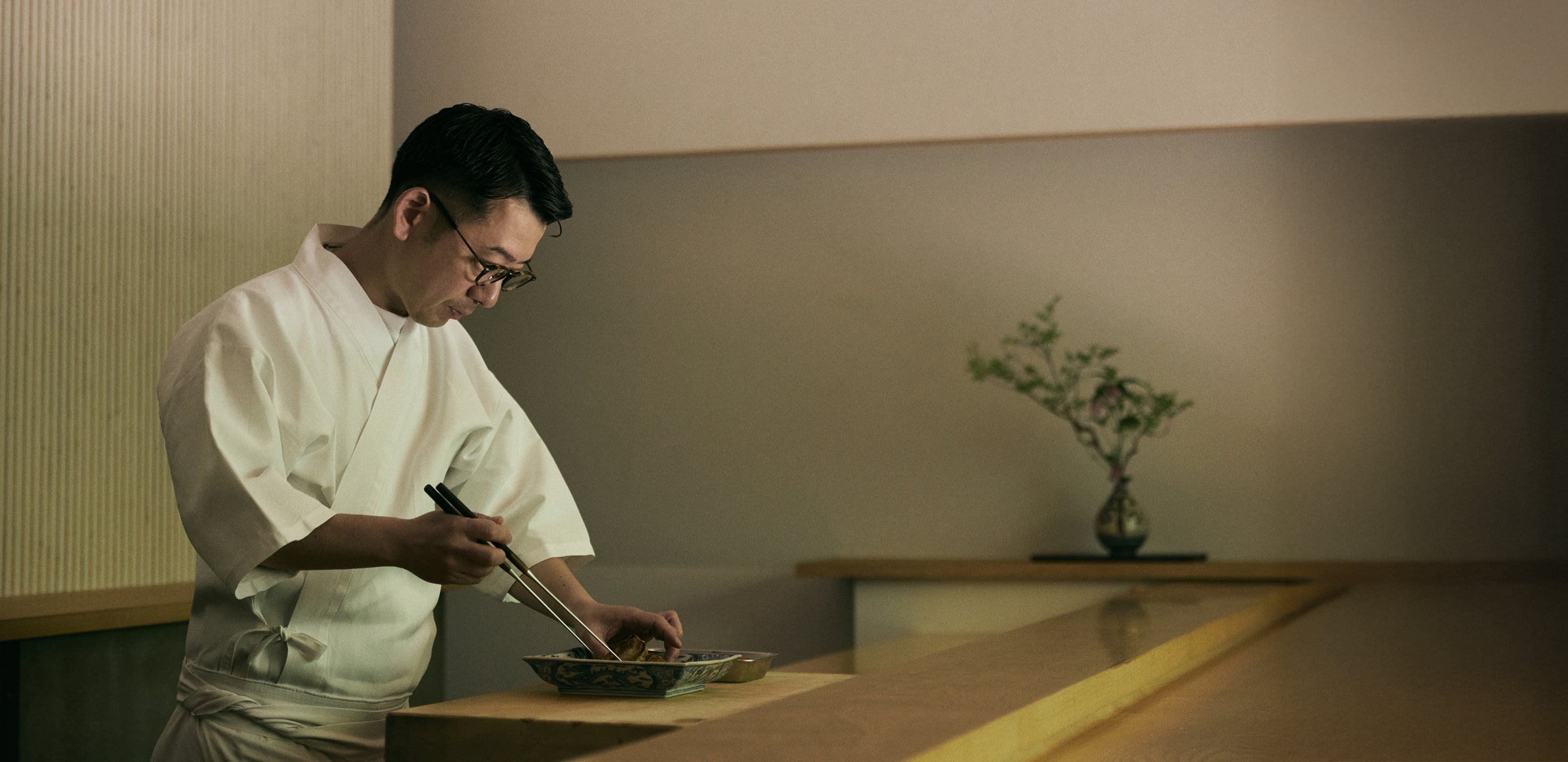 1979年、神奈川県生まれ。 「神楽坂\石かわ」を経て、 2008年、「虎白」を開店。 「今一番いいものを表現する」という 思いのもと、伝統ある日本料理と、 誰の記憶にもない 新しい味の両立を目指し、 日々の精進を重ねている。